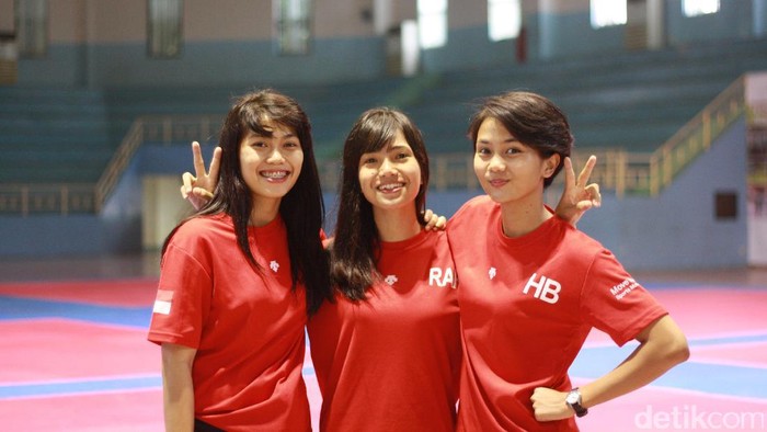Mutiara Habiba, Defia Rosmaniar, dan Ruhil besar dari daerah yang berbeda. Tapi, kini mereka berada dalam satu tim nasional poomsae (seni) taekwondo.