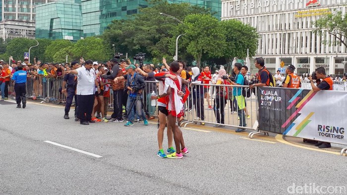 Agus dan Soh bersaing ketat di nomor maraton putra yang berlangsung di Putrajaya, Sabtu (19/8/2017). Agus yang memimpin sejak awal-awal perlombaan, pada akhirnya harus puas finis kedua, di belakang Soh dan meraih perak.