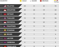 Tuan rumah Malaysia sejauh ini unggul jauh dibandingkan negara-negara lainnya dan sudah merebut 40 emas, 31 perak, dan 22 perunggu.
