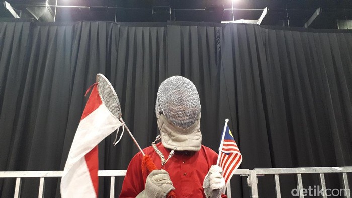 Dalam pertandingan di Hall 11 MITEC, Sabtu (25/8/2017) siang, tim voli putri Indonesia menghadapi Vietnam di babak semifinal. Di tengah-tengah pertandingan, tiba-tiba muncul seseorang dengan baju adat melayu, mengenakan topeng anggar, dan membawa bendera Indonesia dan Malaysia.