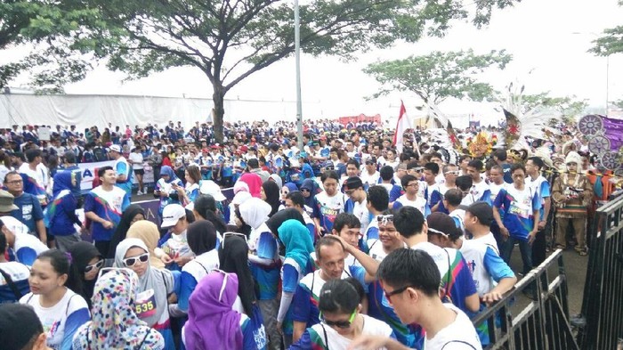 Pantauan detikSport di lokasi, para peserta sudah tiba berbondong-bondong ke lokasi. Area parkir penuh dengan mobil pribadi maupun bus-bus yang mengangkut peserta.