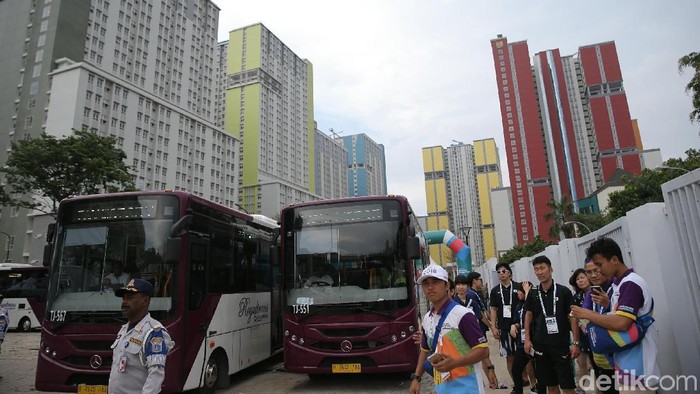 Koper-koper jumbo dan bus-bus menjadi pemandangan pada Jumat (9/2). Saat detikSport berada di area tersebut, rombongan dari Hong Kong baru saja tiba.