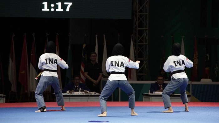 Indonesia semakin mengokohkan diri setelah kembali mendulang dua emas dari nomor poomsae beregu putra dan beregu putri. Masing-masing mengalahkan wakil dari India dan Hong Kong.
