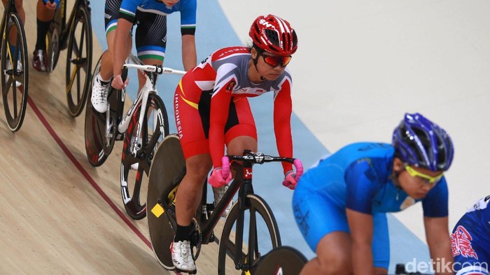 Dalam persaingan balap sepeda nomor trek omnium putri Asian Games 2018 di Jakarta International Velodrome, Rabu (29/8/2018). Ayustina finis di peringkat keenam besar dari 12 pebalap dengan poin total 106.