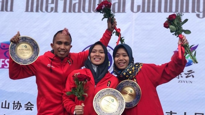 Mereka bertanding di International Climbing Elite Tournament di Anshun, China yang berlangsung 21-22 September 2018. Aries menyabet medali emas, sedangkan medali perak direbut Aspar Jaeololo dan Puji Lestari.