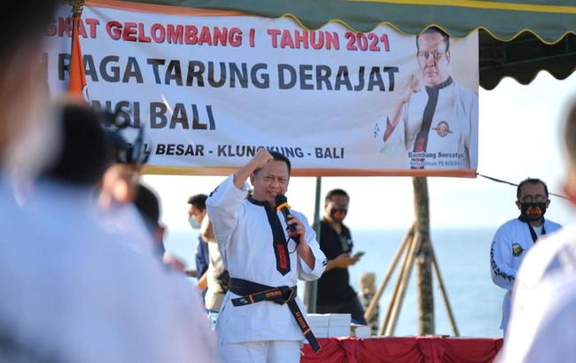 Ketua MPR RI sekaligus Ketua Umum Pengurus Besar Keluarga Olahraga Tarung Derajat (PB KODRAT) Bambang Soesatyo membuka Ujian Kenaikan Tingkat (UKT) Gelombang I Tahun 2021 KODRAT Bali. UKT ini diikuti oleh 406 peserta mulai dari usia 6 tahun hingga 30 tahun ke atas.