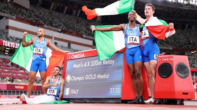Diwakili Lorenzo Patta, Marcell Jacobs, Eseosa Desalu, dan Filippo Tortu, Italia bukanlah unggulan. Apalagi ada Jamaika yang lolos ke final dengan catatan waktu terbaik, yakni 37,82 detik.