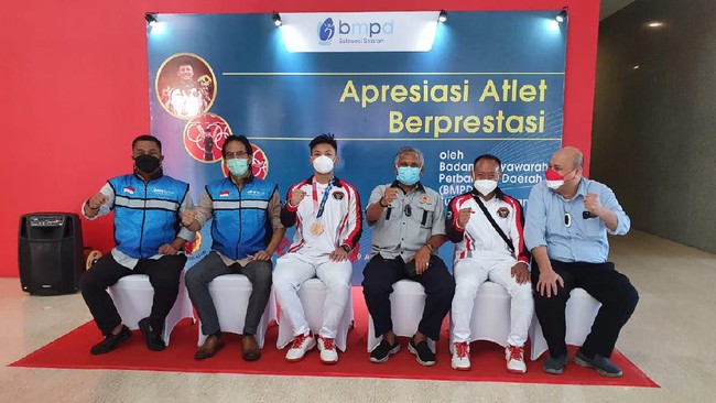 Lifter Rahmat Erwin Abdullah diganjar bonus sepulangnya ke Kota Makassar. Peraih medali perunggu Olimpiade 2020 itu mendapat hadiah uang hingga motor.
