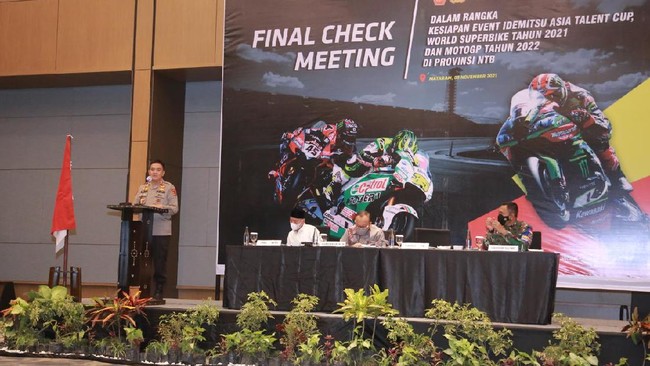 Rapat menyambut gelaran World Superbike Mandalika 2021 sudah digelar oleh jajaran Forum Koordinasi Pimpinan Daerah (Forkopimda) NTB. Penandatanganan pernyataan kesiapan menjadi tuan rumah WSBK 2021, MotoGP 2022, dan IACT, serta pengecekan final dilakuka, Selasa (9/11/2021).
