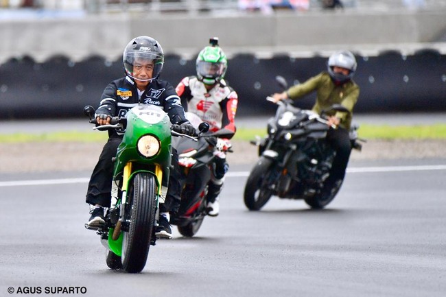 Dalam video berdurasi sekitar satu menit itu, Presiden Jokowi menjelajahi Sirkuit Mandalika di Lombok dengan motor custom.