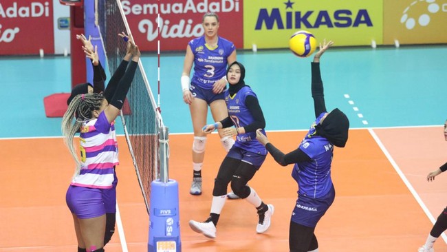 Bertanding di GOR Kawah Candradimuka Padepokan Voli Jenderal Polisi Kunarto, Sentul, Bogor, Sabtu (12/2/2022), tim Bandung Bank bjb menang dengan skor 3-0 (25-21, 25-13, 25-15) dalam lanjutan PLN Mobile Proliga 2022.