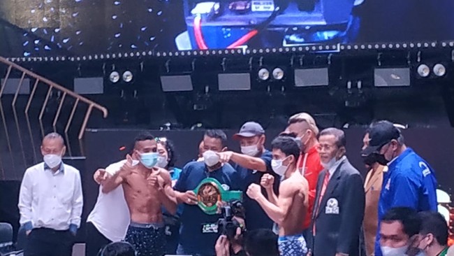 Pertarungan Tibo melawan Jayson akan diselenggarakan di Holywings Gatsu Club, Jakarta, Minggu (27/2/2022). Keduanya sudah melakukan sesi timbang badan dengan hasil 48,6 kg untuk Tibo dan 48,7 kg untuk Jayson.