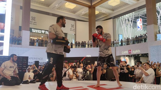 Jelang duel itu, Makhachev menggelar latihan terbuka di Yas Mall, Abu Dhabi, Rabu (19/10). detikSport berkesempatan menyaksikan langsung ia berlatih.