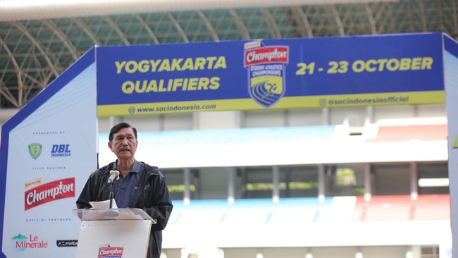 Ketua Umum Pengurus Besar Persatuan Atletik Seluruh Indonesia (PB PASI), Luhut Binsar Pandjaitan, menghadiri acara closing ceremony Energen Champion Student Athletics Championships (SAC) Indonesia 2022 - Yogyakarta Qualifiers di Stadion Mandala Krida, Minggu (23/10).