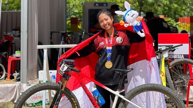 Indonesia mendapat dua emas di cabor sepeda SEA Games 2023 dari atlet sepeda Sayu Bella Sukma Dewi. Sayu pun bangga bukan main.