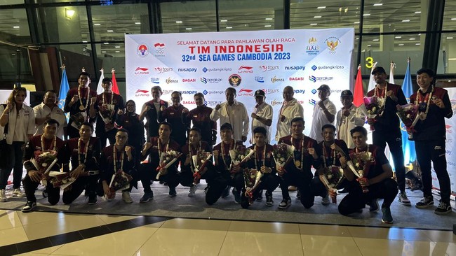 Tim voli putra Indonesia tiba di Tanah Air setelah berhasil mencetak hat-trick medali emas di SEA Games 2023 Kamboja. Mereka pun puas dengan torehan sempurna tersebut.