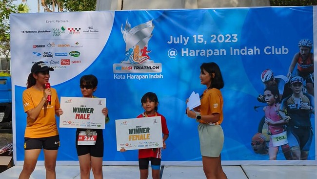 Damai Putra Group baru saja mengadakan ajang triathlon yang bekerjasama dengan Triathlon Buddies dan Indorace bertajuk 'Bekasi Triathlon Kota Harapan Indah 2023'. Ini jadi kali pertama ajang tersebut diadakan yang berlokasi berlokasi di Harapan Indah Club Hotel Santika Premiere Kota Harapan Indah, yang diikuti ratusan peserta untuk turun di cabor renang, sepeda, dan lari.