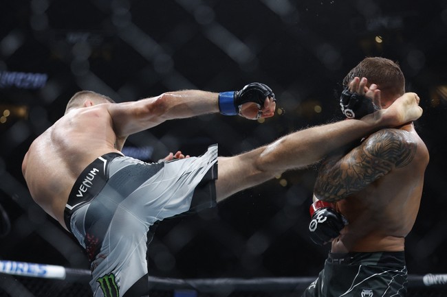 Justin Gaethje menang atas Dustin Poirier di UFC 291. Jurus high kick-nya jadi penentu, sebuah tendangan yang mengerikan!