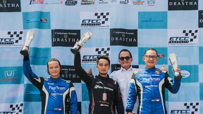 Glenn mengikuti kelas ETCR dan ISTCR 3600 pada putaran ketiga ISSOM 2023 di Sirkuit Internasional Sentul, Minggu (13/8). Pebalap BRM Motorsport TCD itu tak tertahankan untuk menaiki podium pertama.