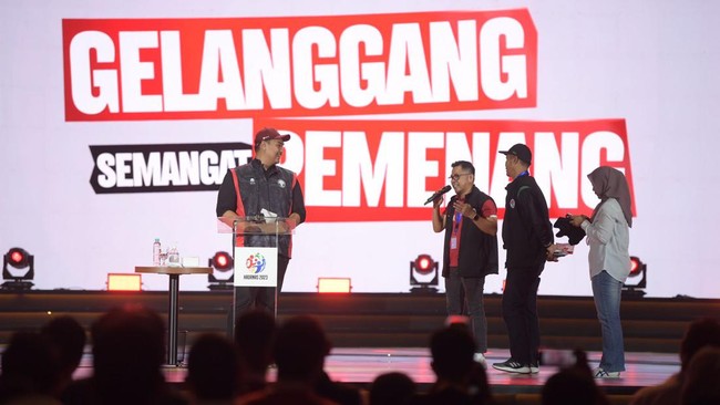 "Saya mau pemanasan dulu ya. Mana suara Indonesia Barat? Mana suara Indonesia Tengah? Mana Suara Indonesia Timur? Mana Suara Indonesia Raya?," ucap Menpora dalam keterangan pers.