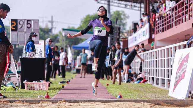 Dia berhasil naik podium juara sekaligus mematahkan rekor lompatan terjauh yang dicatatkan oleh Winney Maharaati Ruung dari SMAN 1 Tanjung, Kalimantan Selatan, yang memegang rekor sebelumnya dengan catatan 4,83 meter.