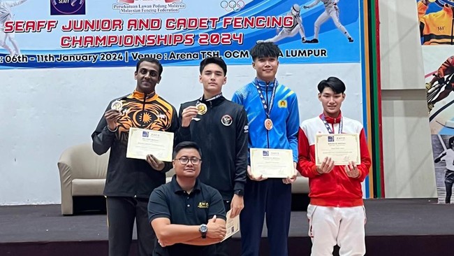 Tim Anggar Kadet dan Junior Indonesia sukses meraih 5 medali pada Kejuaraan Anggar ASEAN yang bertajuk SEAFF Junior and Cadet Championships 2024. Kelima medali tersebut terdiri dari 1 medali emas, 1 perak, dan 3 perunggu.