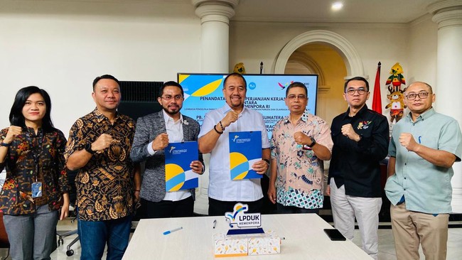 Kesepakatan itu dituangkan dalam Perjanjian Kerjasama yang ditandatangani oleh Pelaksana Tugas (Plt) Direktur LPDUK) Kemenpora, Indra Jayaatmaja, bersama Ketua Harian PB PON XX Wilayah Sumut, Baharuddin Siagian, di Kantor LPDUK Kemenpora Jakarta, Jumat (9/8/2024).