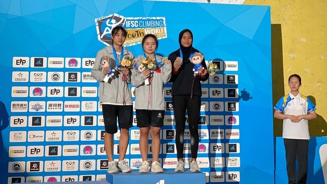 Atlet panjat tebing putri Indonesia Putri Wijaya Berliana meraih medali perunggu di Kejuaraan Dunia Panjat Tebing Remaja 2024. Ia mencatatkan waktu terbaik 7,34 detik.