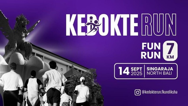 Di antara banyak pilihan, hadir satu kegiatan spesial yang siap menyemarakkan kalender olahraga tahun ini, yaitu KedokteRUN 2025, ajang lari sejauh 7 km yang akan berlangsung di Singaraja, Bali, pada Minggu, 14 September 2025.